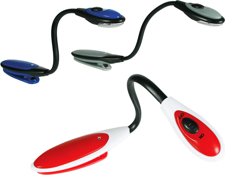 Clip-on lamper | Disse små, lette lamper kan fastgøres til bogen, så du kan læse i sengen, på farten, eller hvor som helst. |